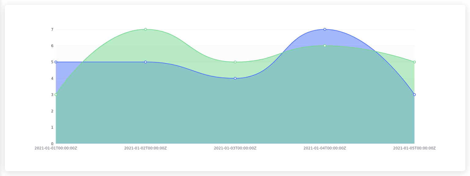 Suppose you have data points representing accumulated values over days. Here's how you can plot an area chart: